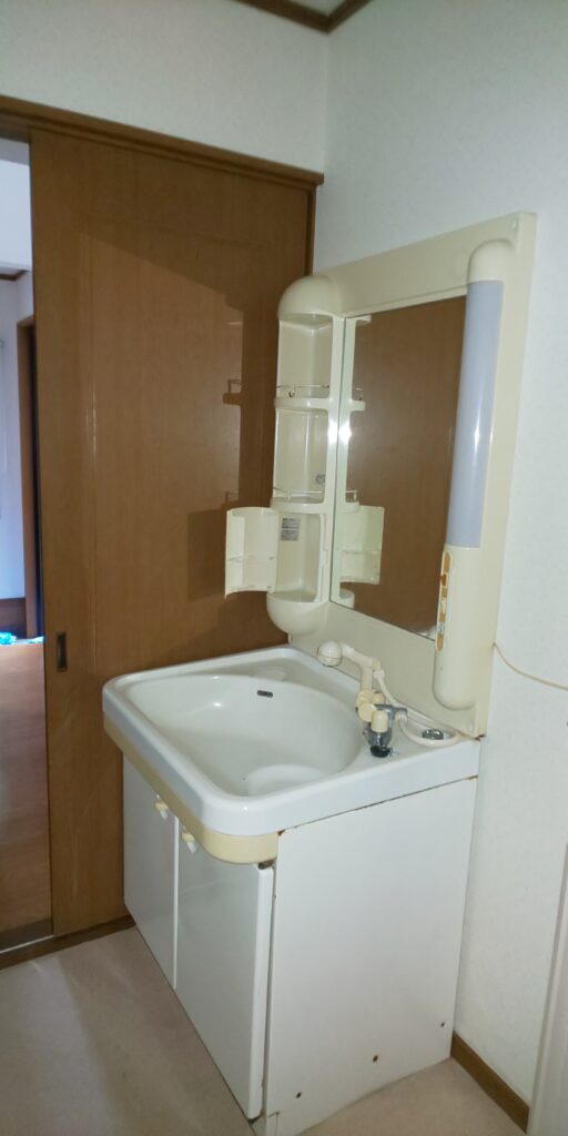 既存の洗面化粧台を撤去し新しい洗面化粧台へ交換しました。既存配管の状態を確認し、必要な調整を